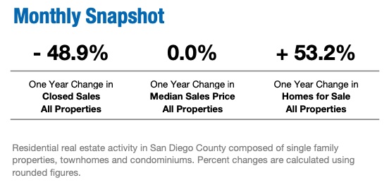 The San Diego Association of Realtors December Report shows the median home price in San Diego County was up 2.3% over the previous year at $869,900 for detached, single-family homes. Condos were down 0.8% over the previous year at $585,000.